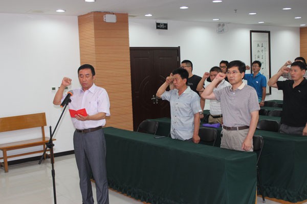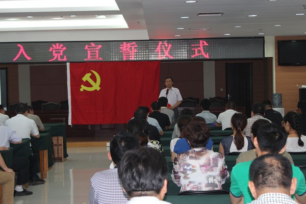 宣誓仪式结束后,集团党委副书记、纪委书记任永信与大家共同学习了十八大以来,发展党员的新标准和基本方针有所变化,发展党员的基本十六次方针:控制总量、优化结构、提高质量、发挥作用。并对开展“三严三实”活动作出了讲话,他讲到:开展“三严三实”不光是在领导干部中体现,是作为每一名党员必须做到的根本,全国反腐倡廉不是一阵风,是党要管党从严治党的措施。最后他对21名新党员提出要求:一是在新的时期下要坚定党员信仰;二是不但要在组织上入党,更要在思想上、工作上、学习上发挥党员的先锋模范作用;三是要积极投身于三严三实活动中来,按照要求,做好表率;四是新党员不论走在什么岗位上,都要时刻牢记自己是一名共产党员,积极参加党组织活动,以自己的实际行动践行入党誓词,对菏建今后的发展做出自己的贡献。