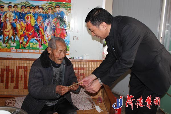 集团党委副书记、纪委书记任永信将2000元救助金送到刘一常老人手中
