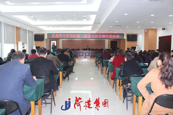 为进一步加强思想道德建设,牢固树立党员的党章、党规、党纪意识,3月26日,集团党委举办党课专题教育宣讲会。集团党委副书记、纪委书记任永信同志以《认真学习党内法规,做讲纪律、守规矩的表率》为题,为大家上了一堂生动精彩的党课。集团领导、机关全体党员和基层各单位党支部书记参加宣讲会议。
