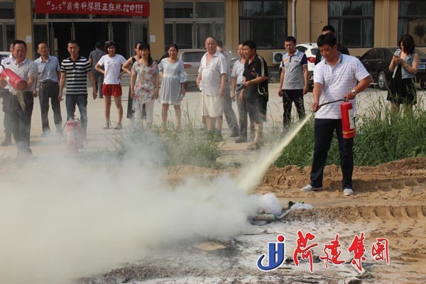 消防演练前,魏如贺教官首先向大家讲解了消防器材的使用方法及应急逃生技能,并观看了应急逃生录像。随后,总指挥长吕丽英吹响了消防疏散演练的紧急哨声,所有人员在听到疏散哨声后快速有序的逃离着火点,全部疏散到安全地带,并分队进行了现场操作演练。