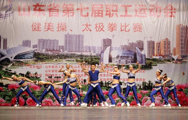 6月1日至2日,山东省第七届职工运动会两个项目太极拳、健美操比赛在菏泽大剧院拉开帷幕。来自全省各地市、省产业、省大企业和省直机关工会的25支代表队、700余名职工运动员参加比赛。我集团代表队运动员在为期两日的比赛中,荣获体操混双一等奖和团体三等奖。