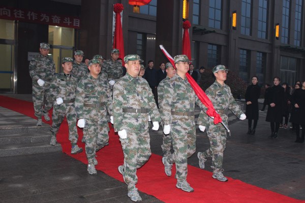 揭牌仪式前举行了升国旗仪式。伟德国际1949领导、有限公司机关全体同志、各单位领导班子及临设机构全体人员参加揭牌仪式。