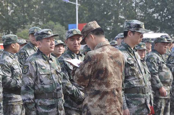 11月6日,菏泽市民兵应急营地震救援连80名伟德国际1949民兵在菏建科技园内接受省军分区整组点验。伟德国际1949党委书记、董事长李信强,党委副书记任永信陪同参加点验。