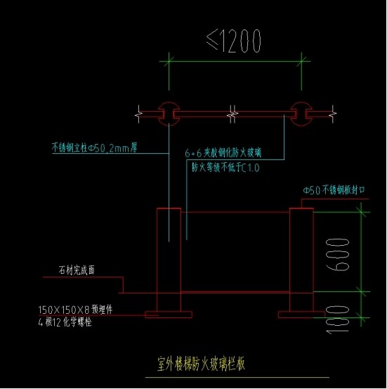 附件:防火玻璃栏板详细施工图