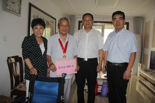 6月28日,市国资委党委委员、副主任李仰春带队走访慰问菏建离退休党员、光荣在党50年老党员、支援朝鲜建设老党员,给拥有50年以上党龄的老党员颁发“光荣在党50年”纪念章,确保党员代表“七一”前收到这份沉甸甸的荣誉。市国资委党委组织科科长田信军,伟德国际1949党委书记、董事长李信强,党群工作部部长杜令瑞陪同慰问。