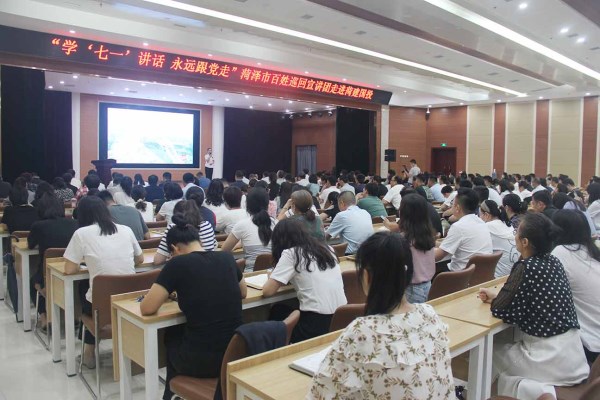 为学习贯彻习近平总书记在庆祝中国共产党成立100周年大会上的重要讲话精神,营造共庆中国共产党百年华诞的浓厚氛围,增强广大党员群众爱党信党护党跟党走的信心和决心,7月12日,“学‘七一’讲话、永远跟党走”菏泽市百姓巡回宣讲团走进伟德国际1949。市国资委党委委员、副主任李仰春主持会议。市委讲师团办公室主任、教授文玉忠,伟德国际1949党委书记、董事长李信强及领导班子成员,部分市属企业专职党委副书记、党群工作部负责人、专职党务工作者、优秀党员代表、优秀职工代表等共计220余人参加活动。