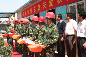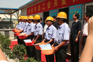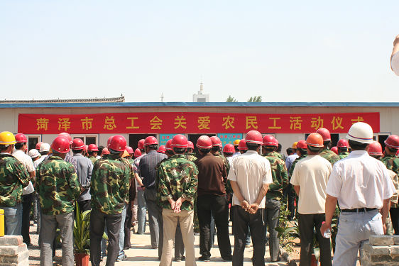 6月1日上午,市人大副主任、市总工会主席李玉华,市总工会常务副主席侯永信带领市总工会有关领导一行,在集团公司领导张广周、李安斌、李信强、任永信、李永亮的陪同下,来到菏建集团华英嘉园建筑工地慰问在炎炎烈日下辛勤工作的农民工,送来了毛巾、洗脸盆、体恤衫等生活用品。