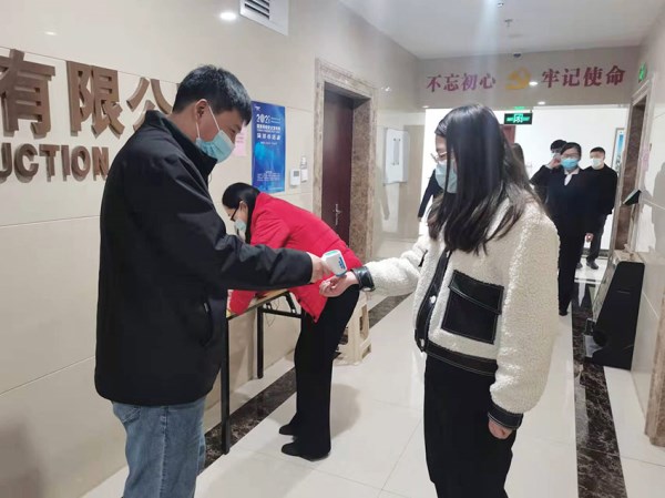 ![]() 在办公楼和各项目严格落实戴口罩、测体温、验“两码”等措施 |