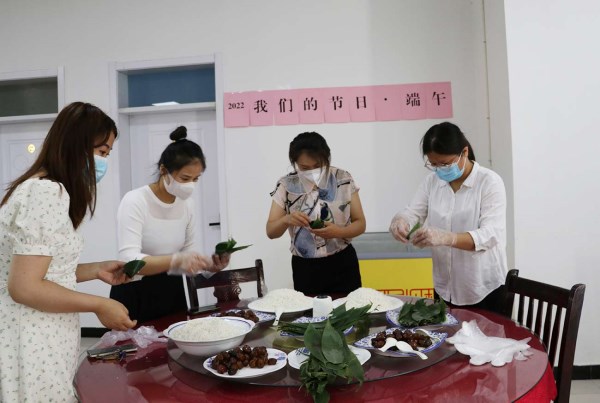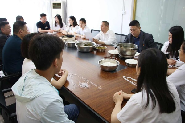 菏建教育公司开展了包粽子活动。活动现场提前准备好了糯米、粽叶、红枣。从未包过粽子的“年轻人”虚心向“老师傅”学习请教,在认真学习了选叶、折叶、盛料、压实、裹叶、扎绳等包粽子的步骤后,大家围站在一起,纷纷上手、互帮互学。只见一双双巧手上下挥动,一片片粽叶、一粒粒糯米,在大家手中,变成了香甜可口的粽子,整个活动现场洋溢着欢声笑语。