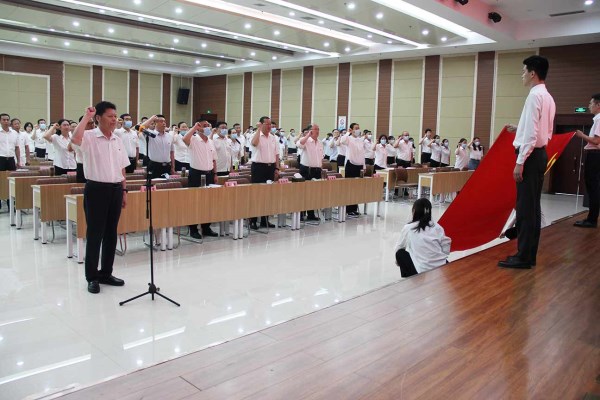 会前,在伟德国际1949党委书记、董事长李信强的带领下,党员们在鲜红的党旗下,重温了入党誓词。大家精神饱满、声音铿锵有力,再次向党和人民作出庄严的承诺,进一步增强了公司广大党员干部的荣誉感和归属感,增强党员干部的党性意识、宗旨意识。