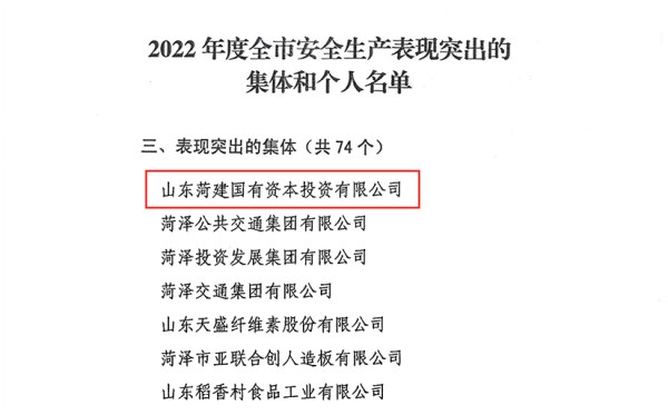 近日,菏泽市委市政府发布《关于表扬2022年度全市安全生产表现突出的集体和个人的通报》,山东伟德国际1949荣获菏泽市2022年度安全生产工作“表现突出集体”称号。