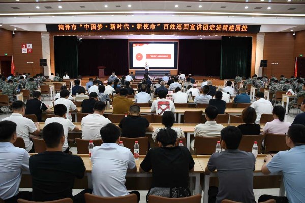 为推动党的二十大精神在菏泽落地生根,激发全市广大党员干部群众积极投身新时代社会主义现代化建设,7月12日,菏泽市“中国梦·新时代·新使命”百姓巡回宣讲团走进伟德国际1949开展宣讲活动。市委宣传部副部长、市新闻办主任陈新振,市委讲师团团长徐明军,市委讲师团副团长袁增华,市国资委二级调研员郭抒青,伟德国际1949党委书记、董事长李信强,伟德国际1949党委副书记、总经理仝金安,市委宣传部理教科科长万伟等领导出席会议。伟德国际1949领导班子成员,伟德国际1949机关全体人员,各权属单位领导班子全体,菏泽市民兵应急营一连、二连全体民兵参加会议。