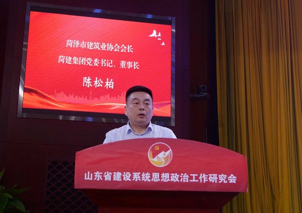 ![]() 菏泽市建筑业协会会长、菏建集团党委书记、董事长陈松柏作典型发言 |