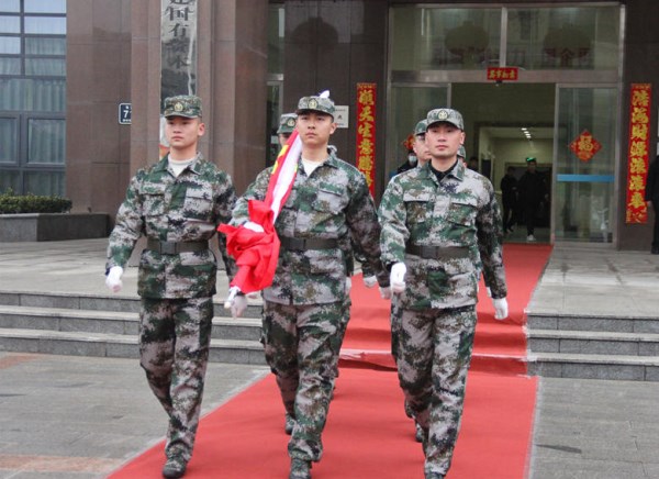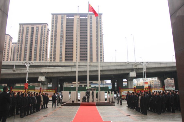 ![]() 在场全体干部职工向国旗行注目礼,齐唱国歌 |