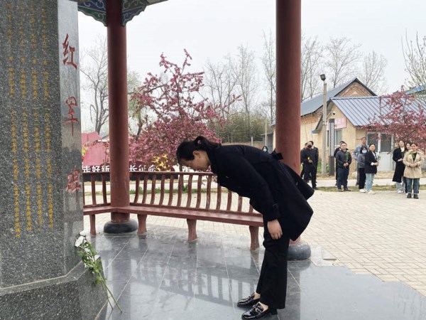 单县是湖西革命根据地的中心区,张寨是湖西区党的工委、地委、县委活动的中心,在革命战争年代作出了卓越的贡献,成为了湖西革命地区的中心,被称为湖西“小延安”。在红军碑前,大家手持黄色和白色菊花,肃立在碑前向革命烈士默哀,依次向烈士们敬献鲜花并瞻仰红军碑,表达对革命先辈的敬仰和哀思。
