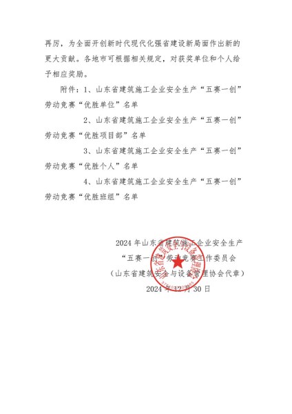 菏建集团荣获2024年度山东省建筑施工企业安全生产“五赛一创”劳动竞赛优胜单位、优胜班组、优胜个人