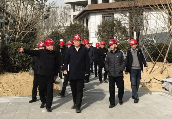 苏红军一行到项目施工现场、样板间、营销中心实地察看,了解项目建设过程中面临的困难和问题,并提出指导性意见和建议,详细询问项目周边配套建设进展情况和下一步的开发计划。