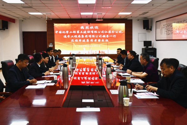 随后,中国化学工程第三建设有限公司江苏分公司、通号工程局集团有限公司相关领导也分别介绍了各自企业的发展历程、主营业务等情况。三方围绕当前市场形势展开了深入、细致的沟通交流,分享了各自在市场拓展、项目管理等方面的宝贵经验和成功做法。