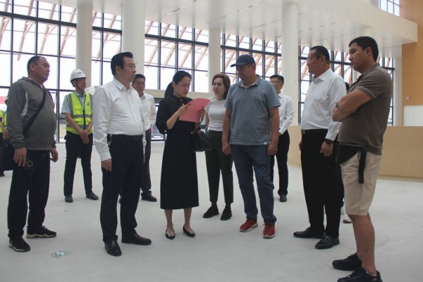 朱马加济耶夫·卡纳特一行参观了菏建企业文化展厅、东方樾府、市立医院东院区等项目,详细了解了伟德国际1949的发展历程、技术实力和重大工程业绩,对菏建在工程建设领域展现出的专业化、标准化和精细化管理水平给予了高度关注和赞赏。