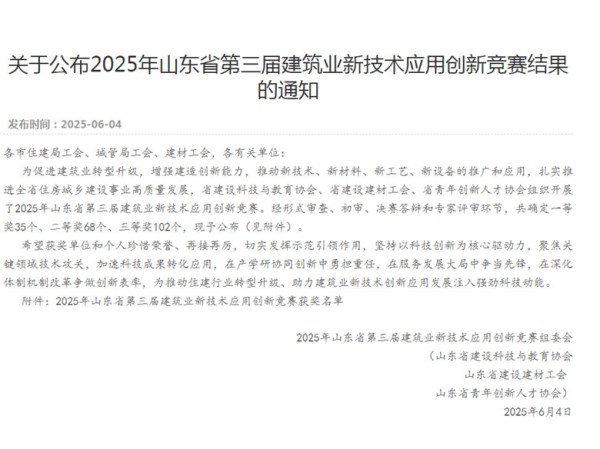 菏建集团再获山东省建筑业新技术应用创新奖项