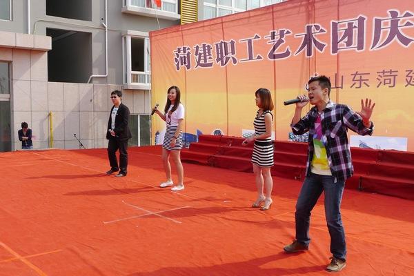 演出中,集团董事长、总经理李信强代表集团党委发表了热情洋溢的致辞,向辛勤工作在施工一线的广大职工同志致以亲切的问候,向长期以来关心、支持菏建集团发展的社会各界朋友表示衷心的感谢。演出以歌曲《相亲相爱》开始,在气势恢弘的大合唱《菏建之歌》 和《咱们工人有力量》结束,内容丰富多彩,无论是歌舞、相声,还是戏曲、朗诵,充分展现了集团巨大发展成就和职工良好的精神风貌。整场演出穿插一系列抽奖环节,现场为获奖者颁发液晶电视、电动车、洗衣机、柔丝被等相应奖品,并向参加活动的各界朋友赠送精美纪念品,台上台下互动,高潮迭起,欢声不断,现场气氛欢快和谐,成为定陶滨河春天项目现场一道亮丽的风景线。