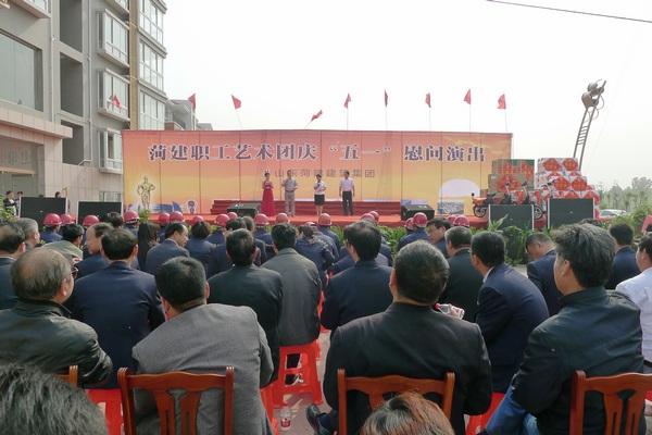 为响应菏泽文化强市建设,进一步丰富职工的业余文化生活,4月29日上午,值“五一”国际劳动节和“五四”青年节来临之际,菏建职工艺术团到定陶滨河春天工地进行慰问演出。