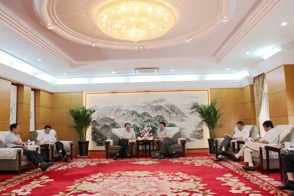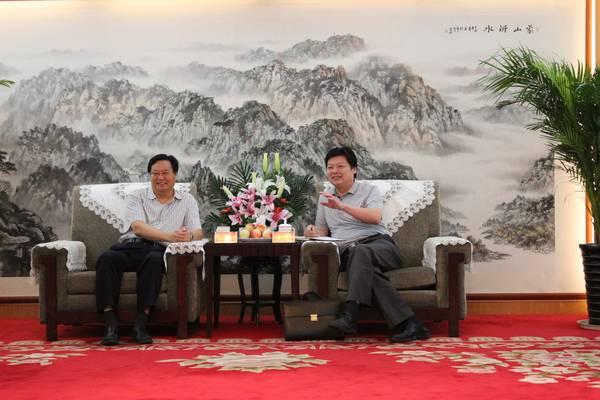 图二:李信强总经理和临沂天元集团董事长、党委书记张桂玉进行座谈交流