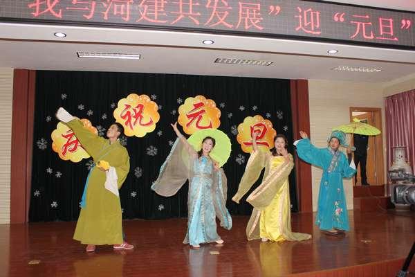 演出开始前,工会主席吕丽英发表致辞,她代表工会向奋战在集团各条战线、各个岗位上的干部职工致以亲切的慰问和良好的祝愿。联欢会在四人合唱《我相信》中拉开帷幕,融歌曲、朗诵、戏剧、情景剧等文艺曲目为一体,并把“我与集团共发展”征文颁奖活动穿插其中,李信强总经理、任永信副书记、吕丽英主席分别为征文一、二、三等奖获得者颁发奖品。整场晚会跌宕起伏,扣人心弦,获得在场观众的热烈掌声。最后,全体演职人员登台合唱《菏建之歌》并合影留念,整场晚会在大合唱的旋律中圆满结束。