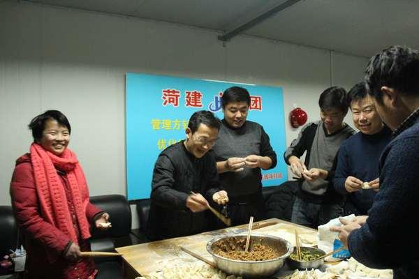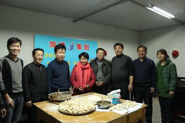 在龙泽花园工地,市政分公司副经理张广东对闫玉娥的生活和学习情况嘘寒问暖,询问她学校的条件适不适应,学习情况怎么样,并送给她一个电暖手宝,同时,把施工在外的市政分公司经理高岗垛的美好祝福送给她。张爱华同志陪闫玉娥剪窗花、叠小动物,让她学到了在学校里学不到的东西。之后,集团工会副主席宋绍达、党群工作部部长兼机关支部书记韩明等相关人员及建设单位驻工地代表,陪闫玉娥一起包水饺、吃水饺,整个建设工地沉浸在欢声笑语之中。