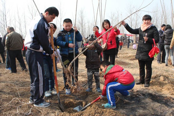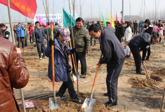 上午8时,大家准时来到集合地点,一起前往牡丹区沙土镇北大洼生态园植树现场。在参加了由市文明办、团市委、大众网菏泽站主办的简短启动仪式后,大家便争先恐后地投入到劳动当中,有的是全家齐上阵,小朋友们也挥锨铲土,毫不示弱。大家相互配合,挖坑、放树、埋土、浇水,每一个环节认真细致,确保提高树苗成活率,活动现场展现出其乐融融的劳动场面。