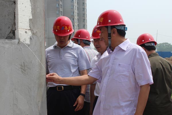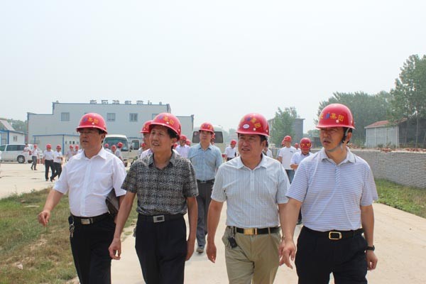 集团党委书记、董事长、总经理李信强(右)观摩施工现场