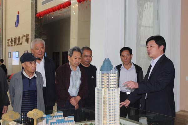 集团党委书记、董事长、总经理李信强向老同志介绍集团楼盘