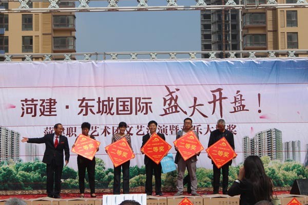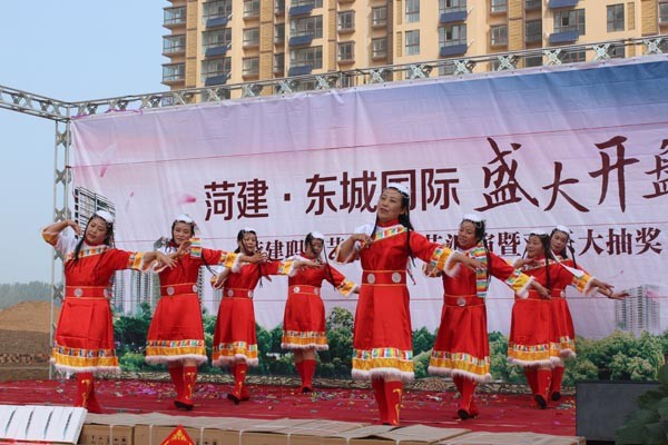 菏建·东城国际开盘当天,意向客户不仅欣赏到了一系列的文艺演出,还凭借手中的抽奖卡进行了抽奖。在演出的表演嘉宾当中不仅有专业的演员,其中还不乏集团职工艺术团的文艺骨干份子。抽奖环节气氛火热,其中一等奖价值5000余元的液晶电视一台;二等奖价值2800余元的IPADmini 5部;三等奖价值1288余元的全自动洗衣机10台;纪念奖50名,奖价值300元的电压力锅一台。另外,还有回馈业主的价值299元的阳光普照奖600名。当天共推出360余套房源,引来500多位购房者疯抢,最终成交260套。